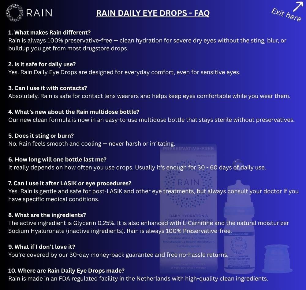 I've been dealing with dry and tired eyes for years. Then I found Rain Eye Drops. Rain has been really helping my eyes. My eyes don't just feel better, they look better!