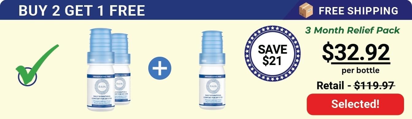See why thousands of people switch to Rain every month and keep coming back! Rain is the must-have drop when suffering from dry eyes because you can feel the difference with its clean and preservative free formula. Designed for daily use.